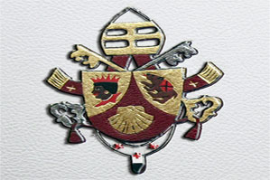 Escudo del Papa en mosaico de pieles metalizadas |